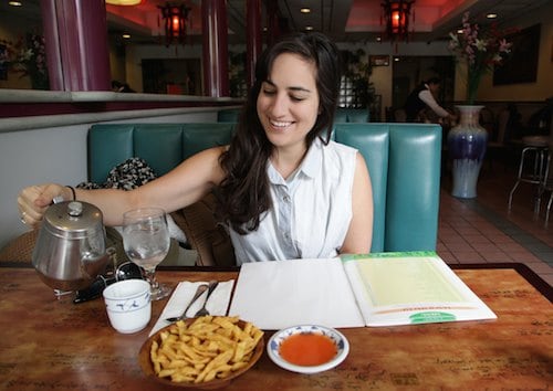 Gina, visibly thrilled with our free tea.