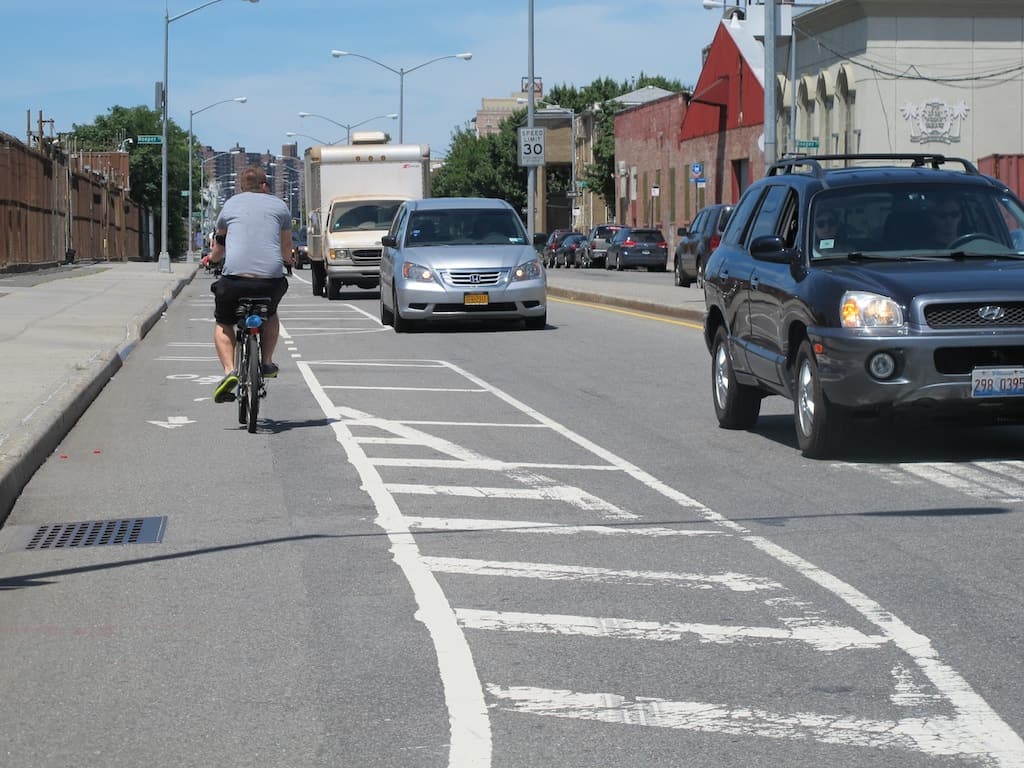 Many northbound riders, either confused, indifferent, or in disagreement with the instruction, would prefer to use the street-level painted lane in the wrong direction.