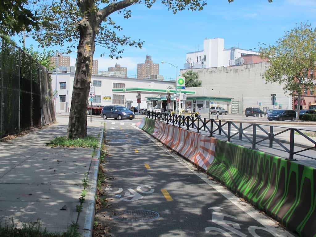 The Flushing Avenue / Williamsburg Street West corridor, approaching Kent Avenue.