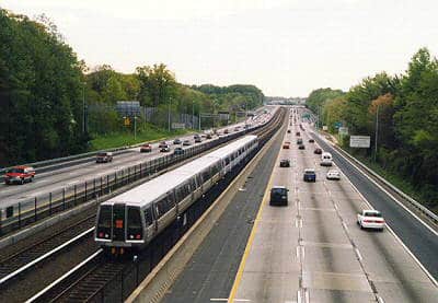 A stretch of the DC Metro’s Orange Line runs in conjunction with I-66.