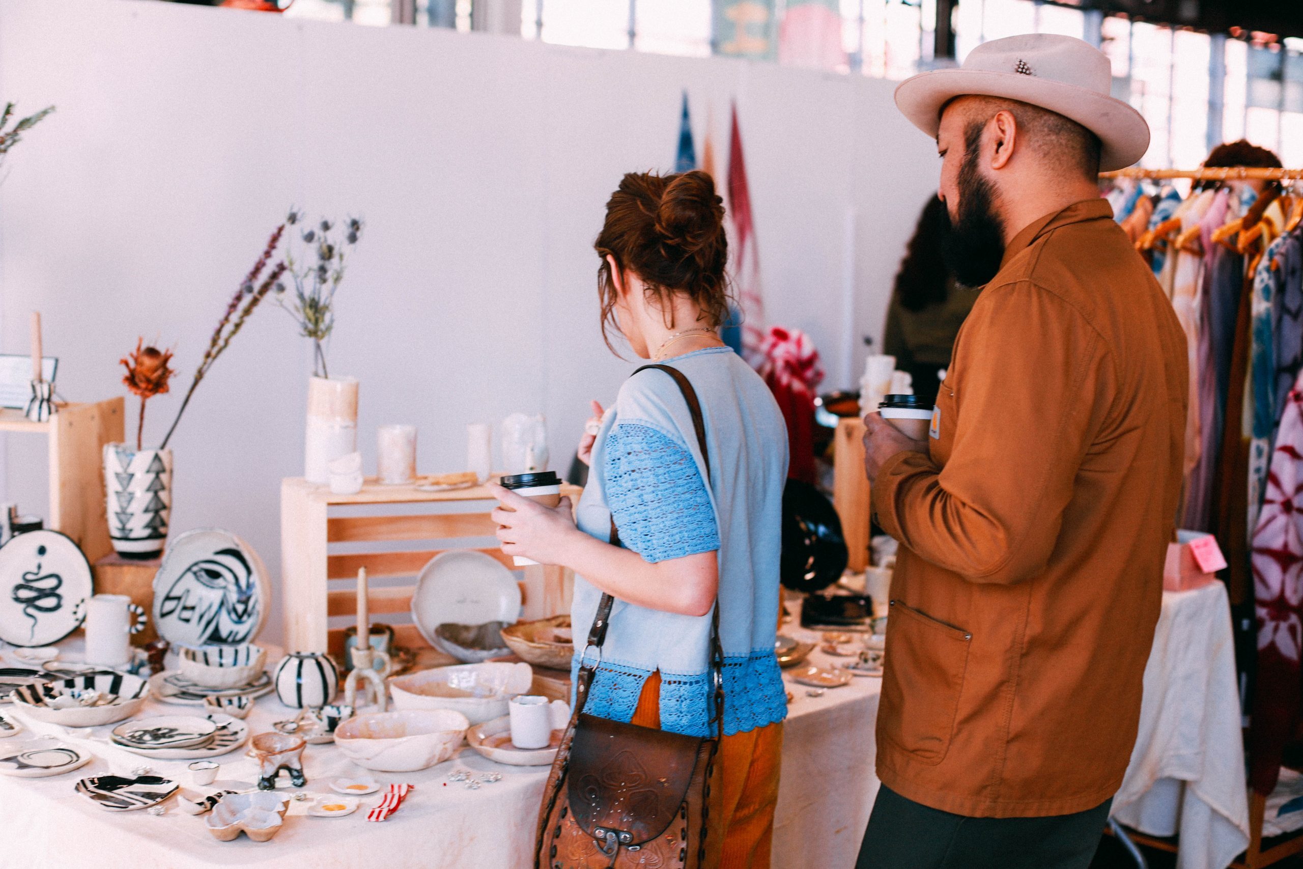 After jurying applications with our criteria in mind (Quality & Value, Aesthetic, & Ethical – more info here at our FAQ) and finalizing the production layout, our talented Curatorial & Design Director curates the Fair by placing artists on the map in a way that flows for shoppers – artists with complementary work will be placed as neighbors, for example. We’re a team of 7, so this is a big part of our process! Our goal is for every Fair to feel intentional, beautiful, and easy to navigate.